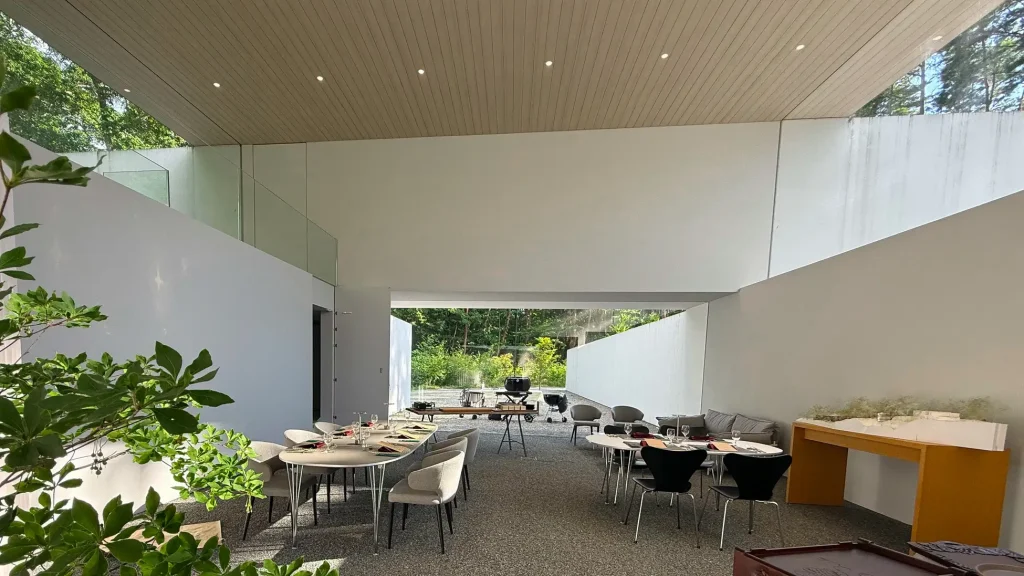 森の中に佇む彫刻のような建築空間で、風、光、緑に包まれながら味わう、五感に響くコース料理と美酒のペアリング。国内外の一流シェフが腕を振るい、その瞬間だけの“体験”を創り上げました。