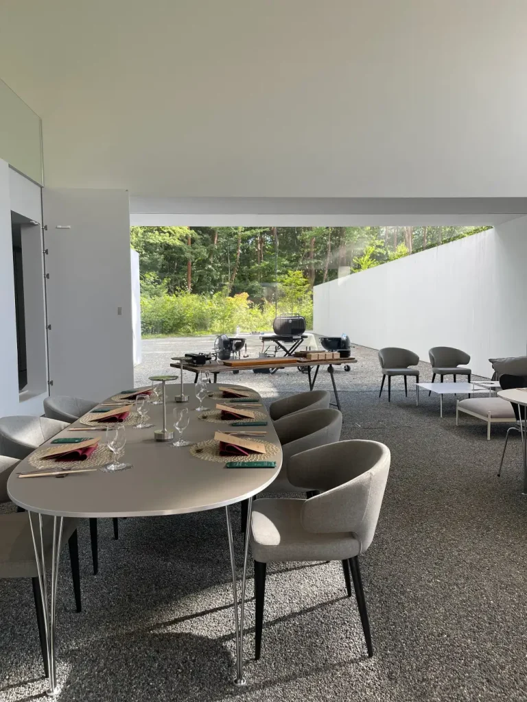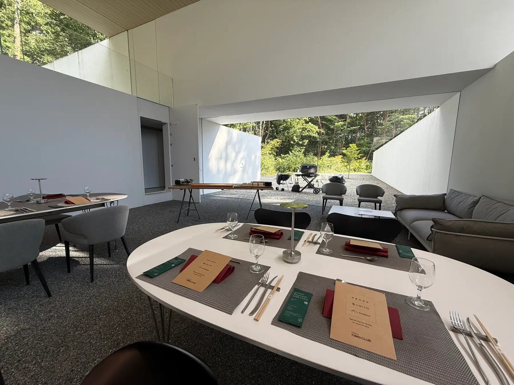 森の中に佇む彫刻のような建築空間で、風、光、緑に包まれながら味わう、五感に響くコース料理と美酒のペアリング。国内外の一流シェフが腕を振るい、その瞬間だけの“体験”を創り上げました。
