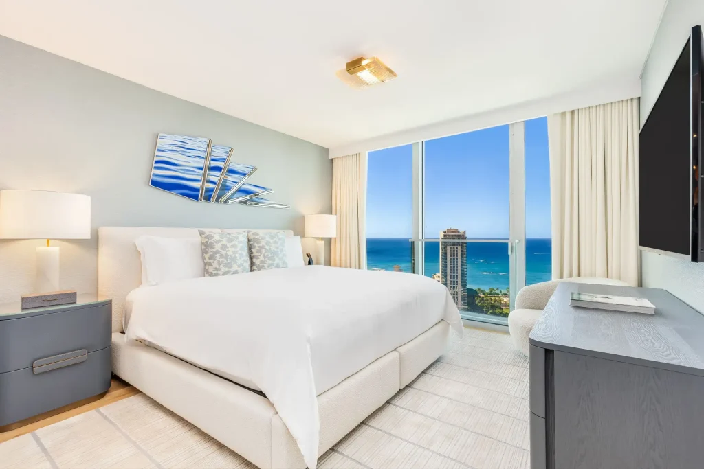 2018年開業の「ザ・リッツ・カールトン・レジデンス・ワイキキビーチ」は、地上100mからワイキキの海を望むタワーレジデンス。視界を遮る建物がなく、海風と光が満ちる空間で、ワイキキ・ホノルル・オアフ島の魅力を存分に堪能できる唯一無二のロケーションです。