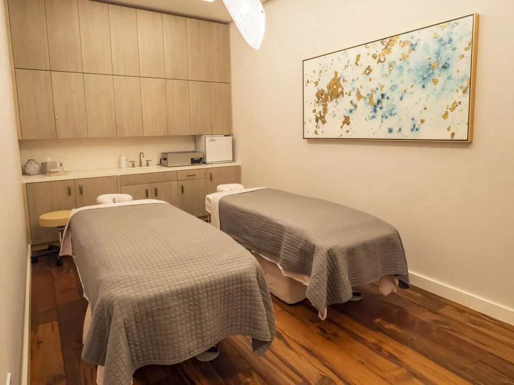 全4室のトリートメントルームのうち、一部はカップルやご夫婦で利用できる設計で、施術後はリラクゼーションラウンジでゆっくりとお過ごしいただけます。